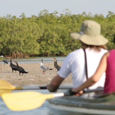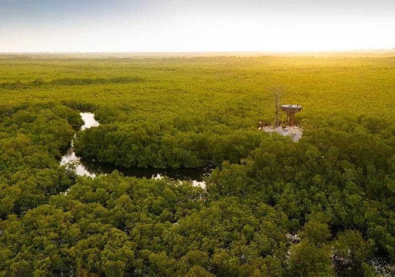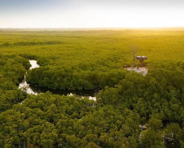 Des paysages à couper le souffle : entre mangroves, îles coquillières et ciels d’or au crépuscule.