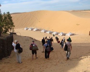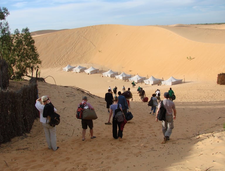 Vivez une nuit unique dans le désert de Lompoul. Arrivez en fin de journée, montez à dos de dromadaire pour voir le coucher de soleil depuis les dunes, puis dégustez un dîner traditionnel sous les étoiles. La nuit se passe sous une tente tout confort, avec au réveil un petit déjeuner au calme.