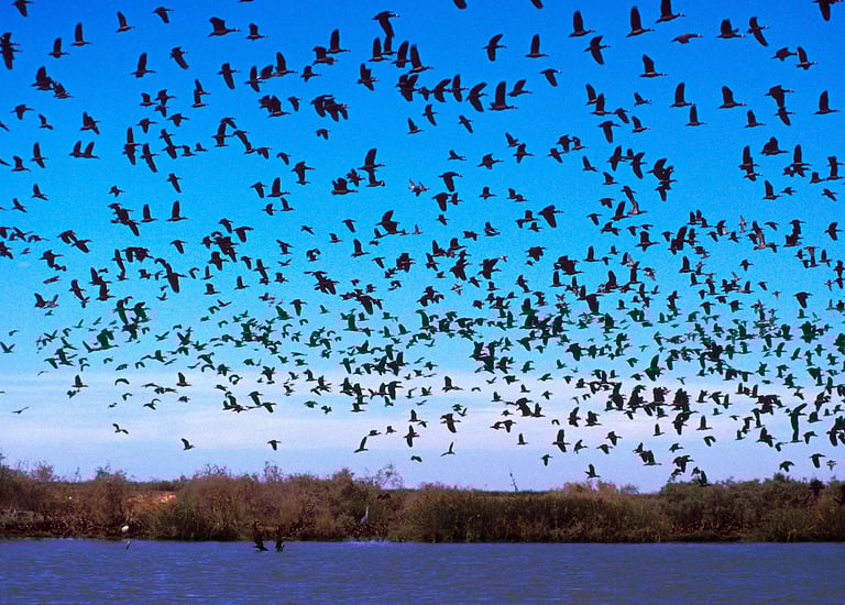 Classé au Patrimoine mondial de l’UNESCO, c’est le troisième site ornithologique d’importance au monde. Pélicans blancs, flamants roses, spatules, cormorans et hérons s’y rassemblent par milliers de novembre à avril.